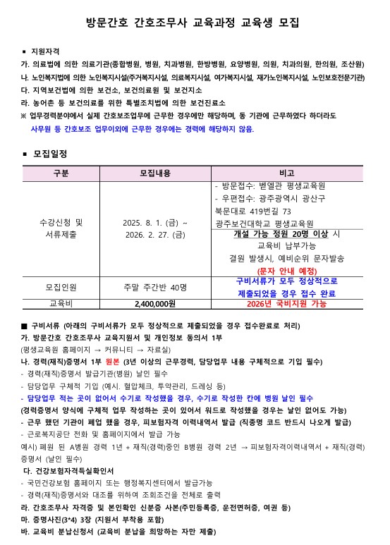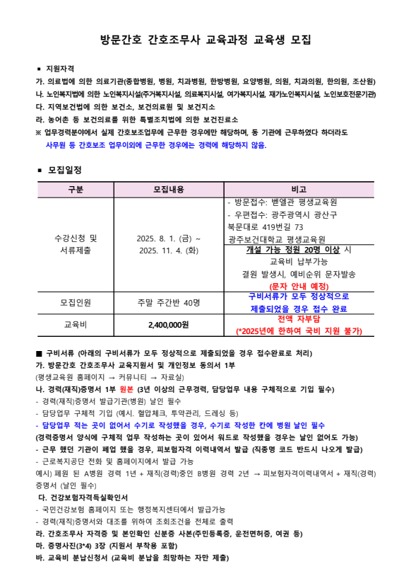 [방문] [모집] [제11기] 방문간호 간호조무사 모집안내